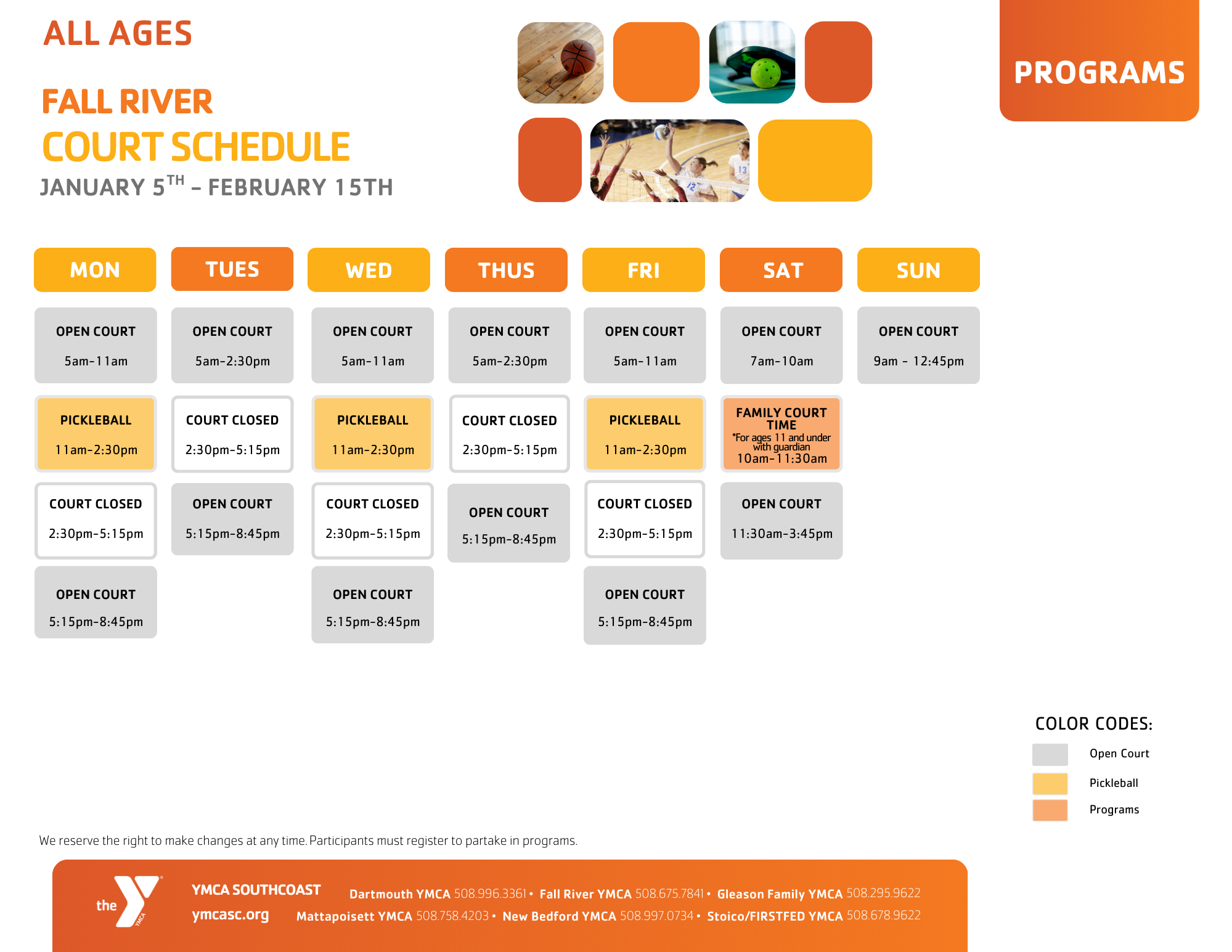 Fall River Pool Schedule -1/5-2/15 – Winter